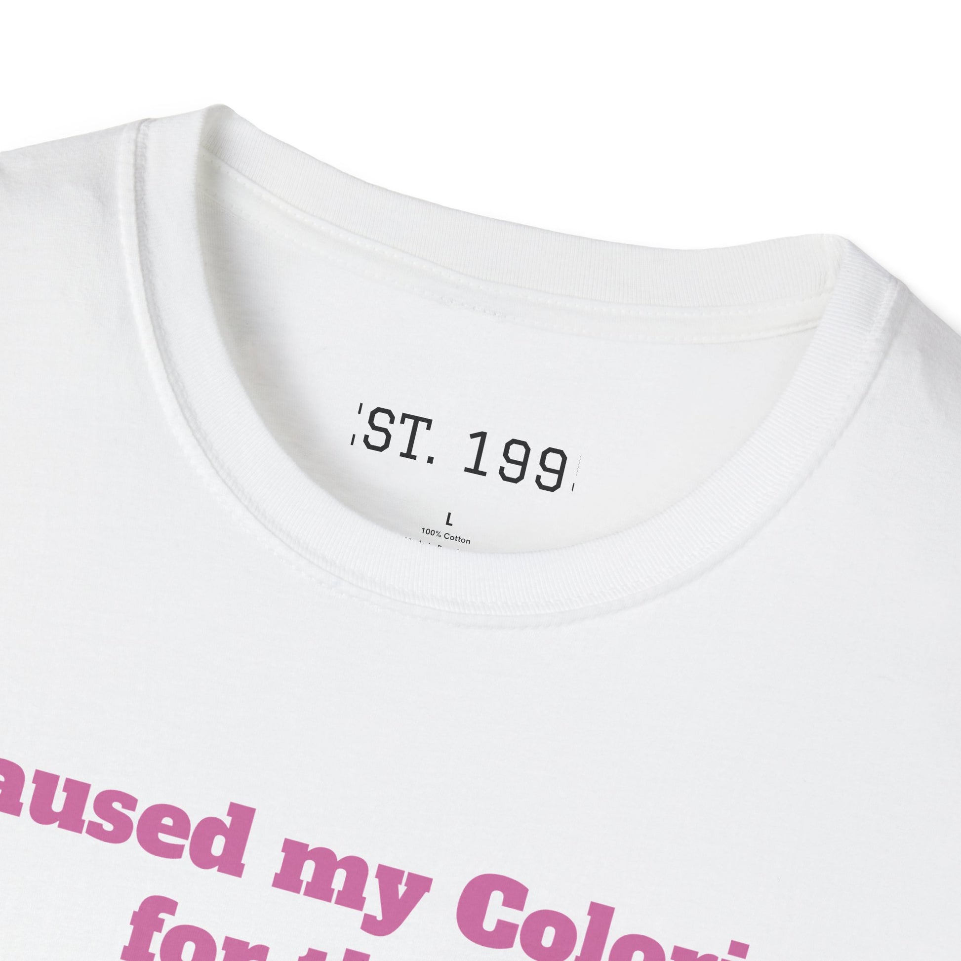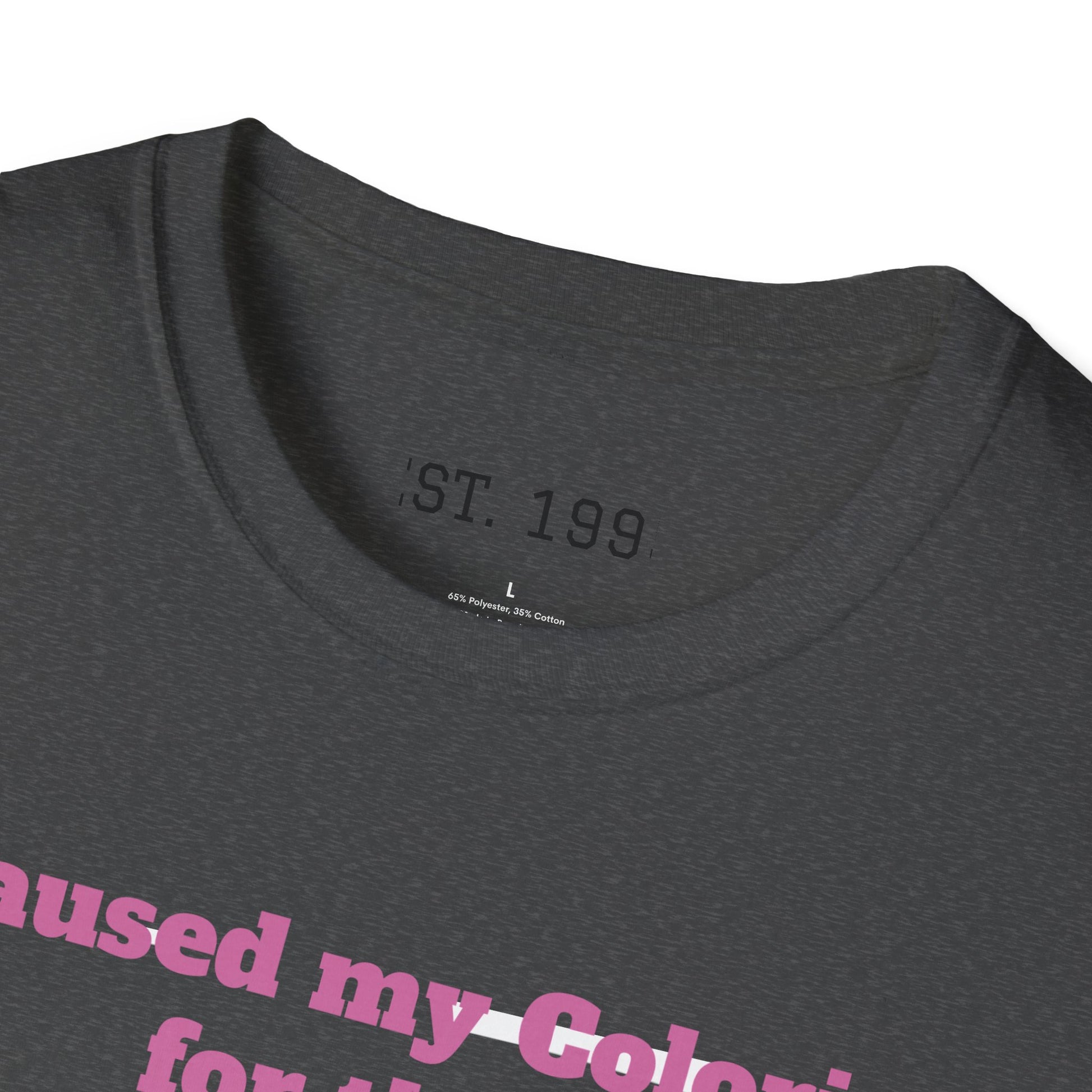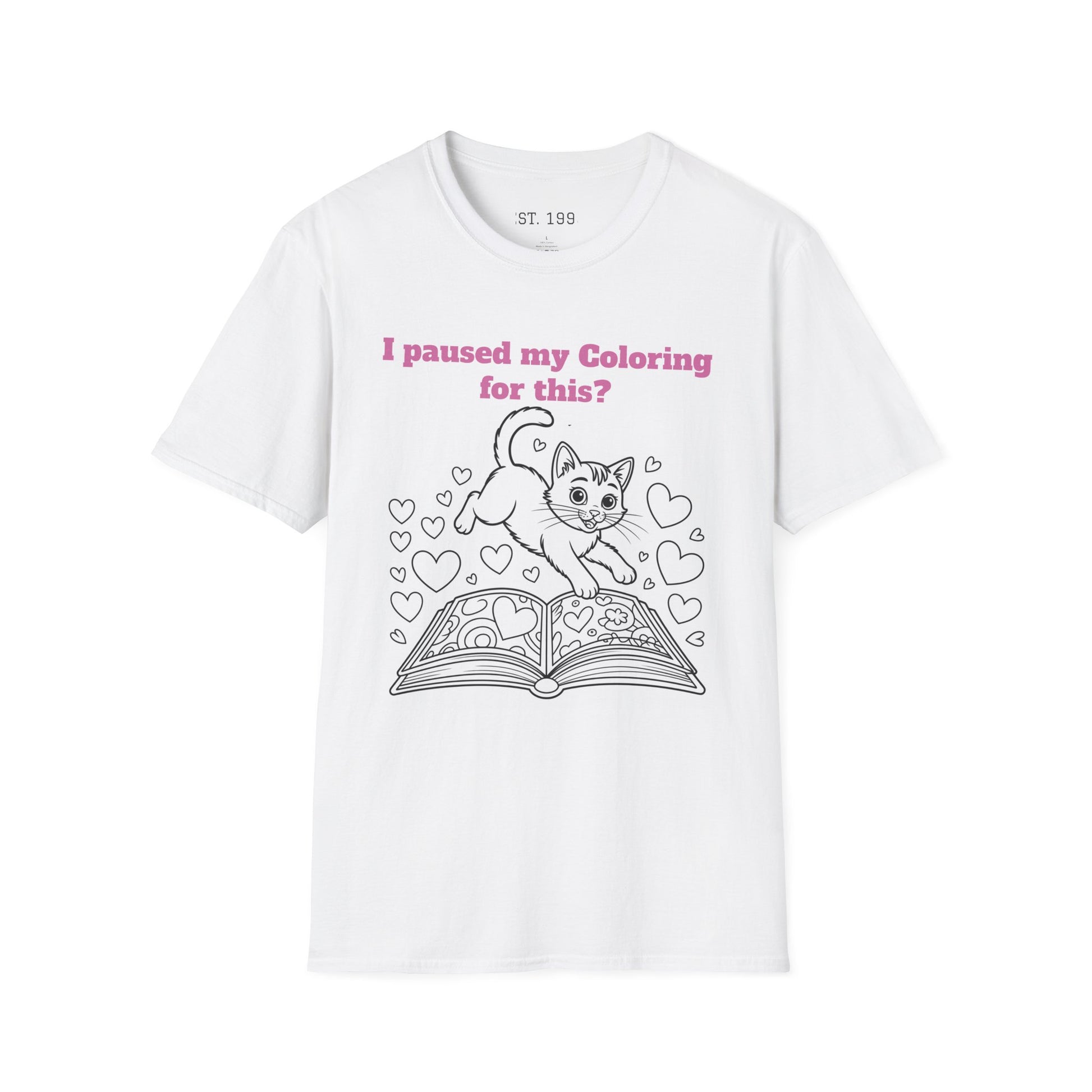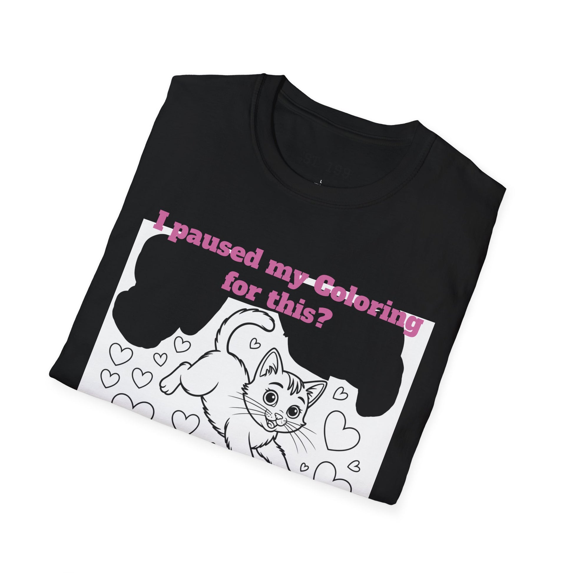 Elevate your casual wardrobe with this charming Unisex Softstyle T-Shirt. Featuring a playful design that states 'I paused my coloring for this,' it's perfect for art lovers and creative souls who enjoy expressing their personality. The t-shirt radiates a fun and relaxed vibe, making it ideal for casual outings, art classes, or cozy evenings at home. It's a great gift for anyone in your life who cherishes creativity, especially during holidays like Mother's Day, birthdays, or as a delightful back-to-school surprise. Made for adults, this t-shirt combines comfort and style effortlessly, making it a versatile addition to any wardrobe.