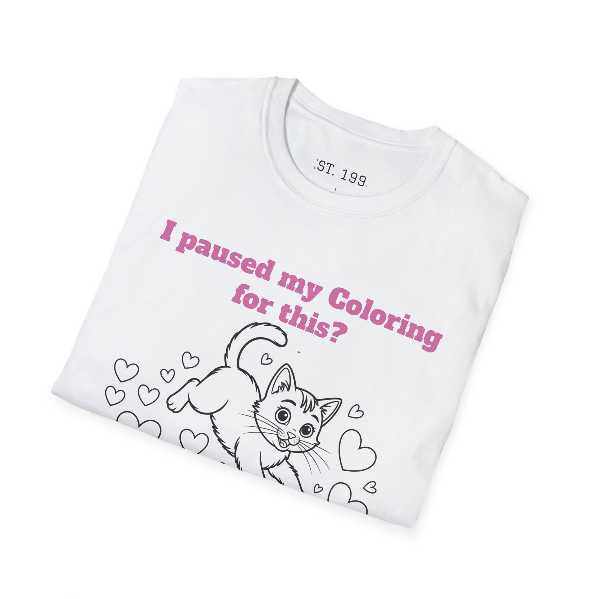 Cat Lover's Coloring Tee | Fun Unisex Softstyle T-Shirt for Creative Souls, Perfect for Gifts, Birthdays, and Cat Enthusiasts