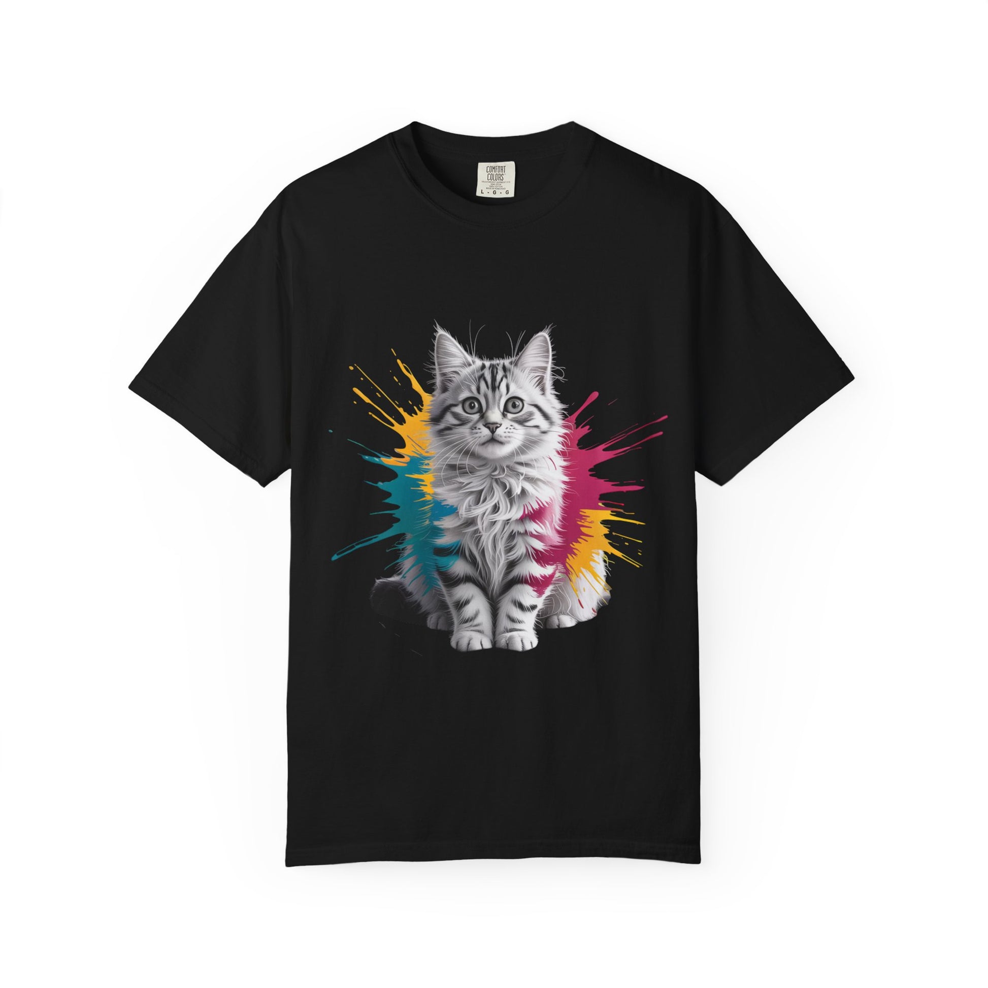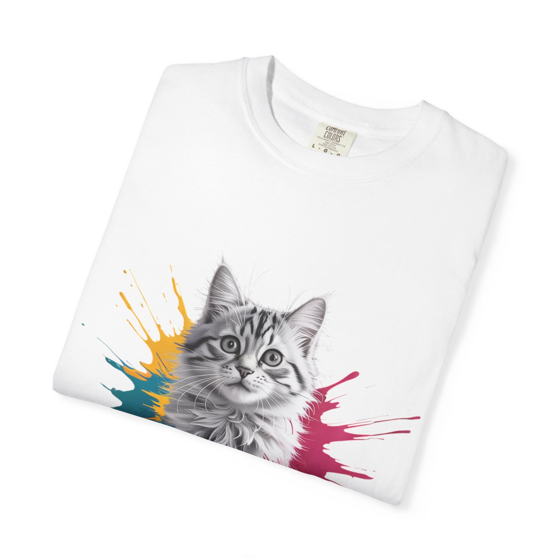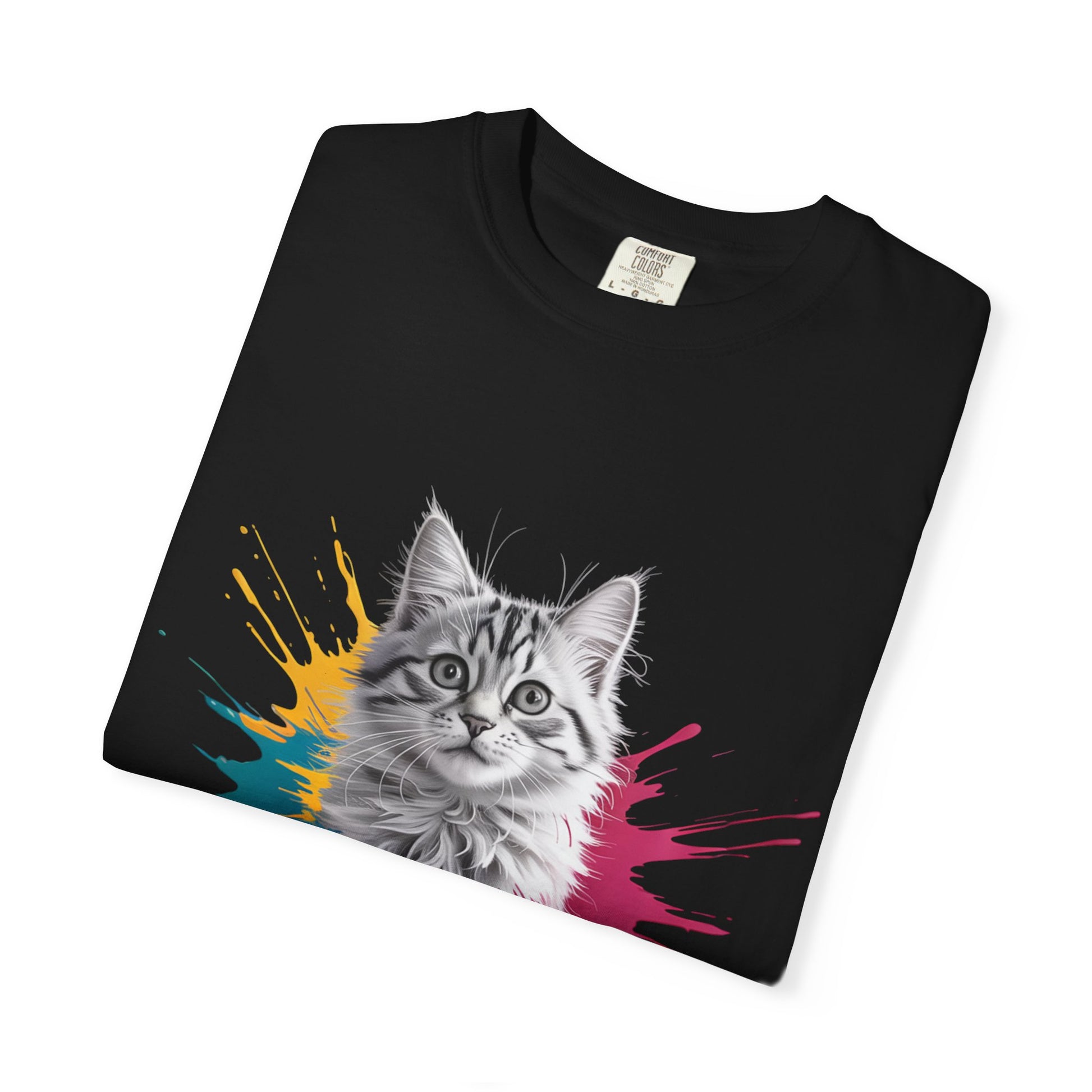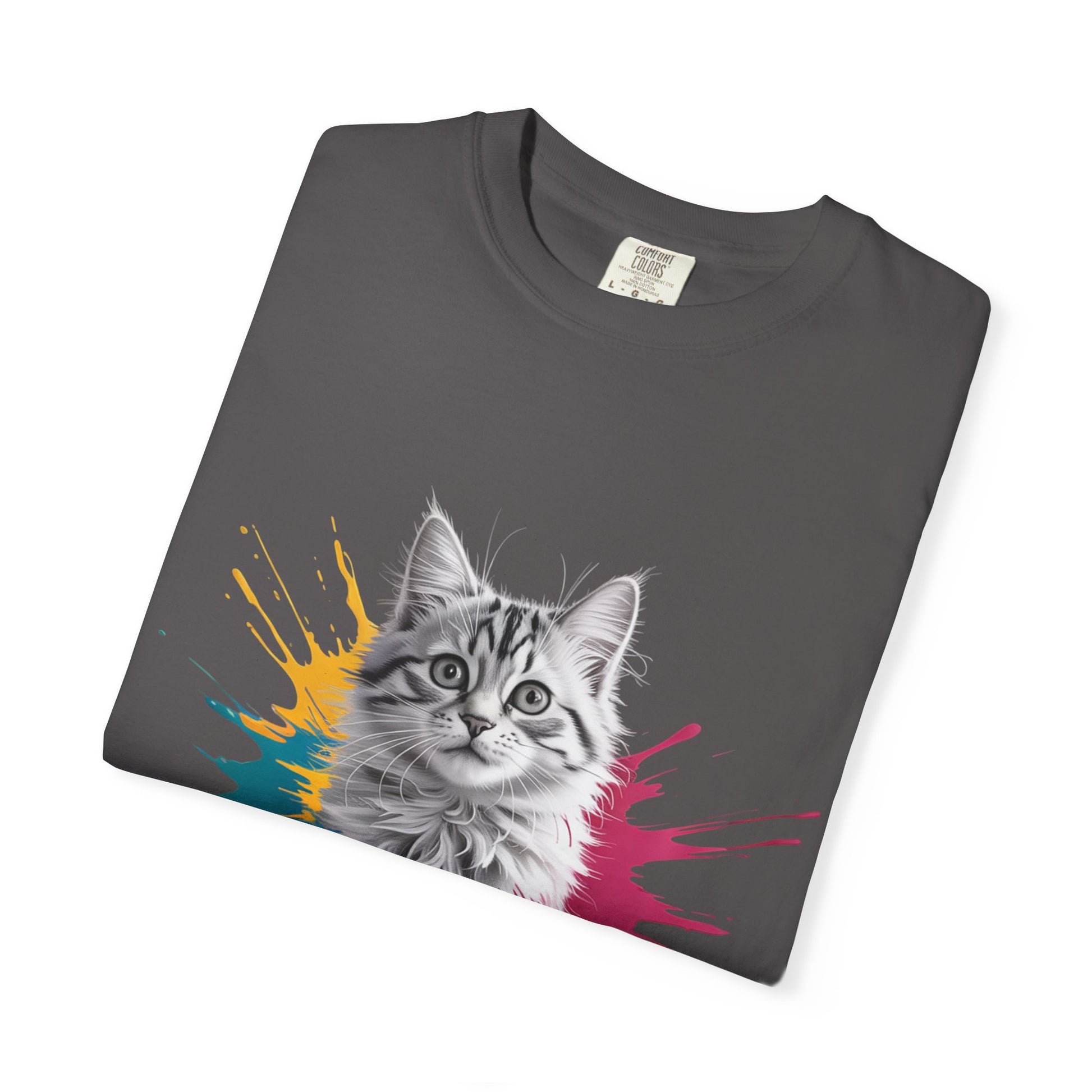 Colorful Cat Graphic Tee for Animal Lovers, Unisex Garment-Dyed T-Shirt, Fun Gift, Casual Wear, Pet Lovers, Birthday Gift