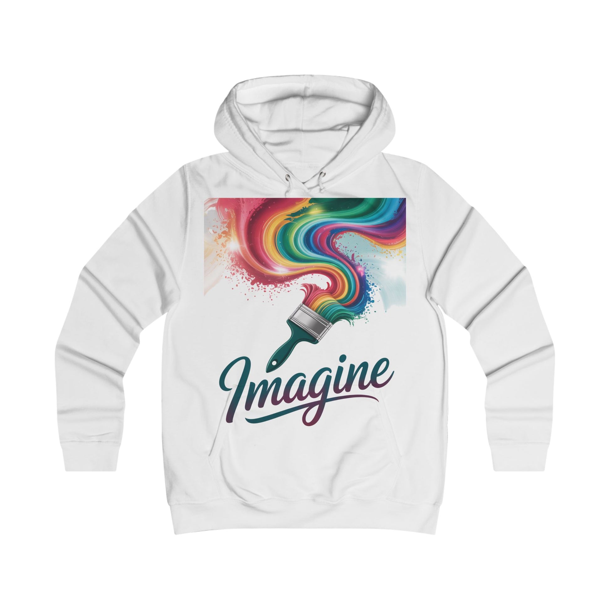 Colorful Imagine College Hoodie, Artistic Hoodie, Unique Women’s Apparel, Gift for Creative Souls, Cozy College Style