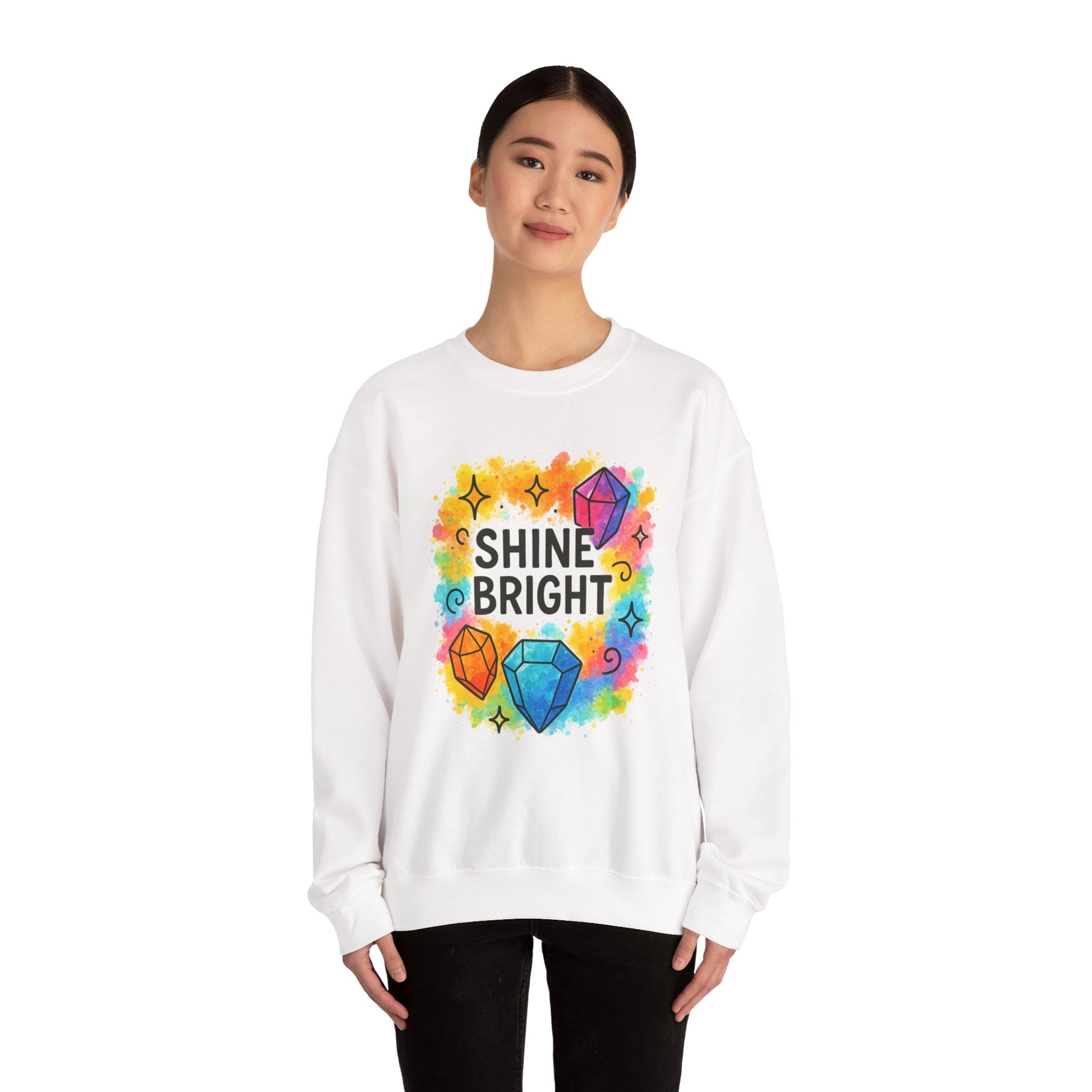 Colorful Shine Bright Sweatshirt | Cozy Unisex Crewneck | Inspirational Gift for Kids & Teens, Rainbow Vibe, Birthday Gift, Everyday Fashion
