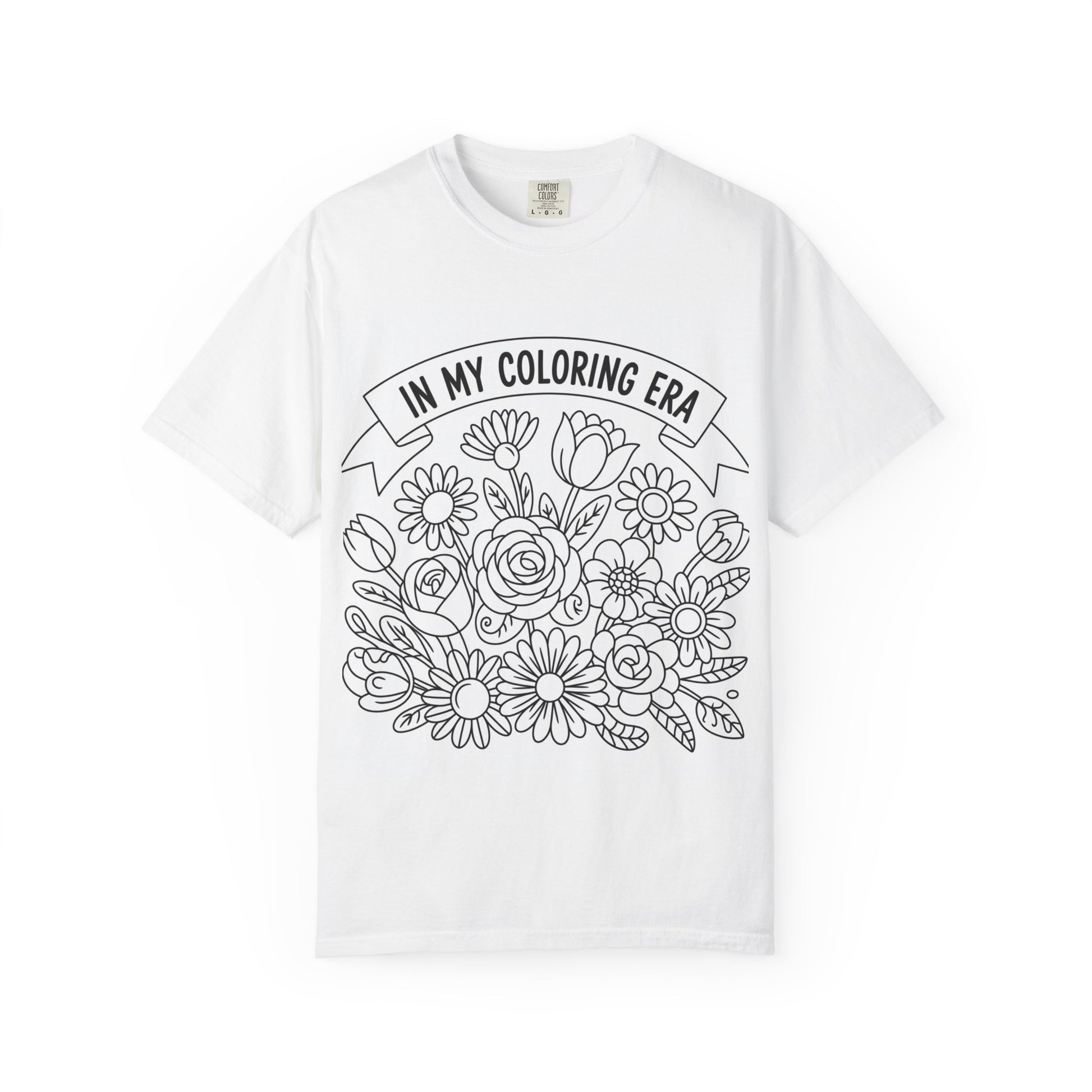 Coloring Era T-Shirt, Floral Graphic Tee, Unisex Gift, DIY Coloring Tee, Relaxed Fit Shirt, Creative Apparel